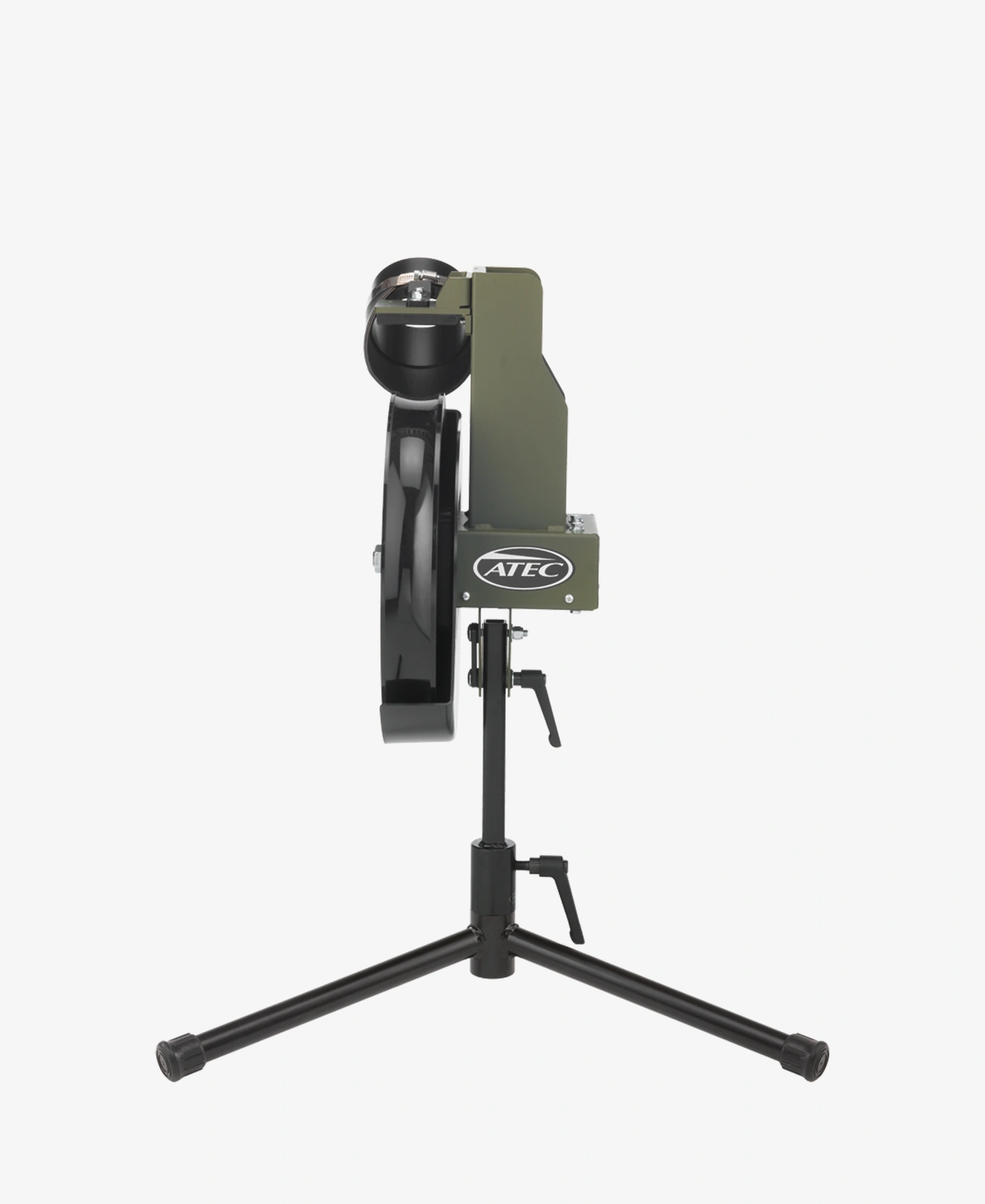 A portable, one-wheel softball pitching machine for fastballs (30–70 mph), grounders, and catching drills.